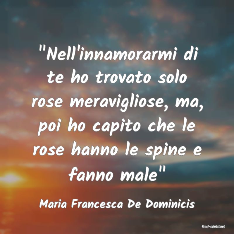 "Nell'innamorarmi di te ho trovato solo rose meravigliose, ma, poi ho capito che le rose hanno le spine e fanno male"