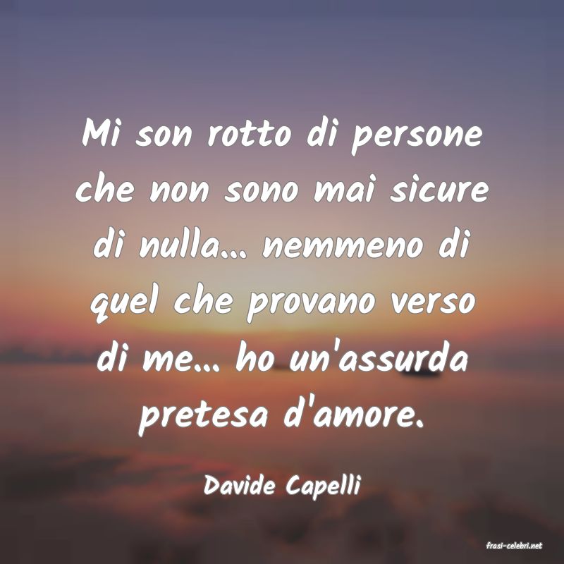Mi son rotto di persone che non sono mai sicure di nulla... nemmeno di quel che provano verso di me... ho un'assurda pretesa d'amore.