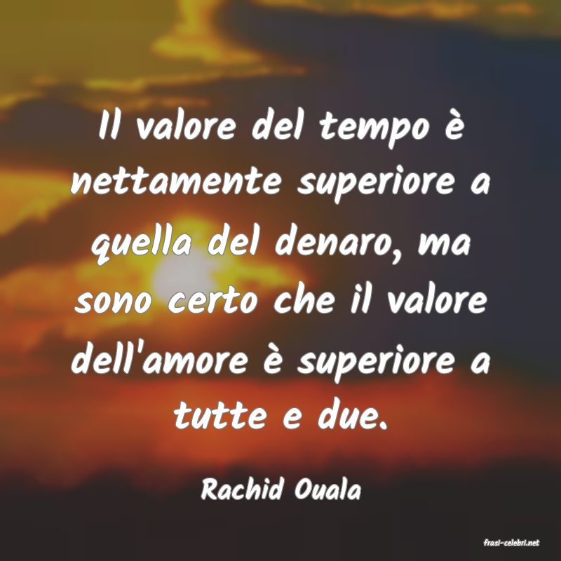 Il valore del tempo è nettamente superiore a quella del denaro, ma sono certo che il valore dell'amore è superiore a tutte e due.