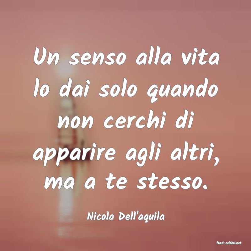 Un senso alla vita lo dai solo quando non cerchi di apparire agli altri, ma a te stesso. Nicola Dell'aquila