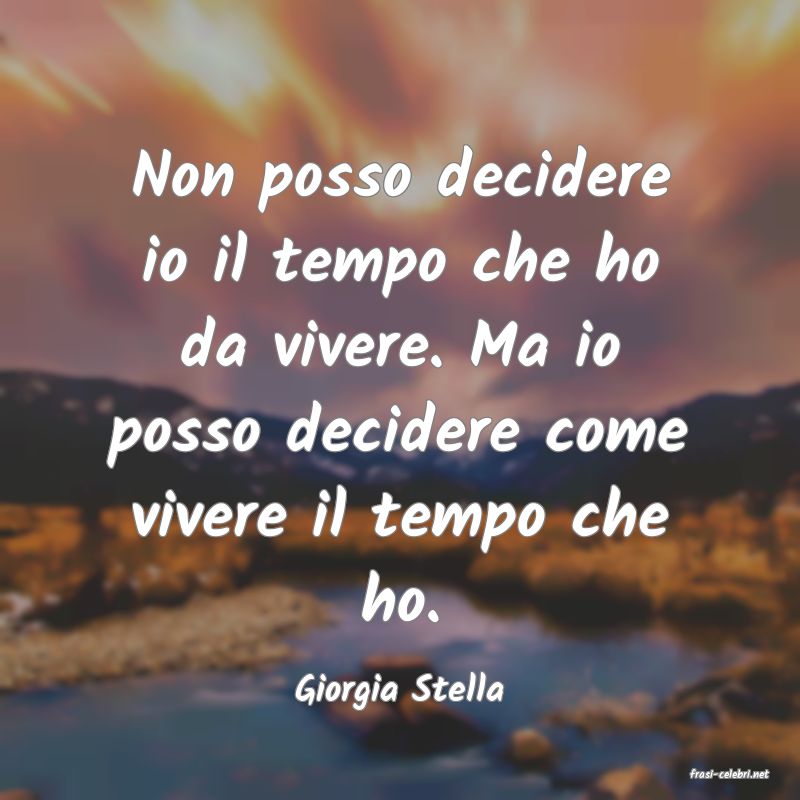 Non posso decidere io il tempo che ho da vivere. Ma io posso decidere come vivere il tempo che ho.