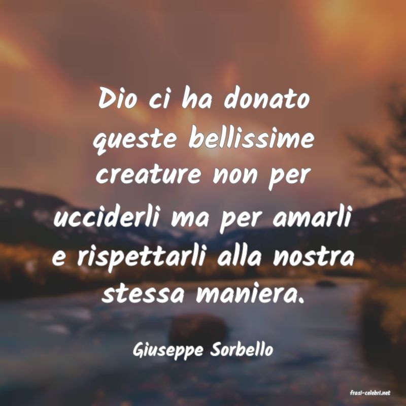 Dio ci ha donato queste bellissime creature non per ucciderli ma per amarli e rispettarli alla nostra stessa maniera.