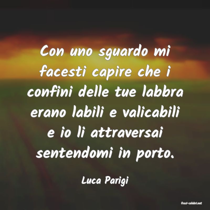 Con uno sguardo mi facesti capire che i confini delle tue labbra erano labili e valicabili e io li attraversai sentendomi in porto.
