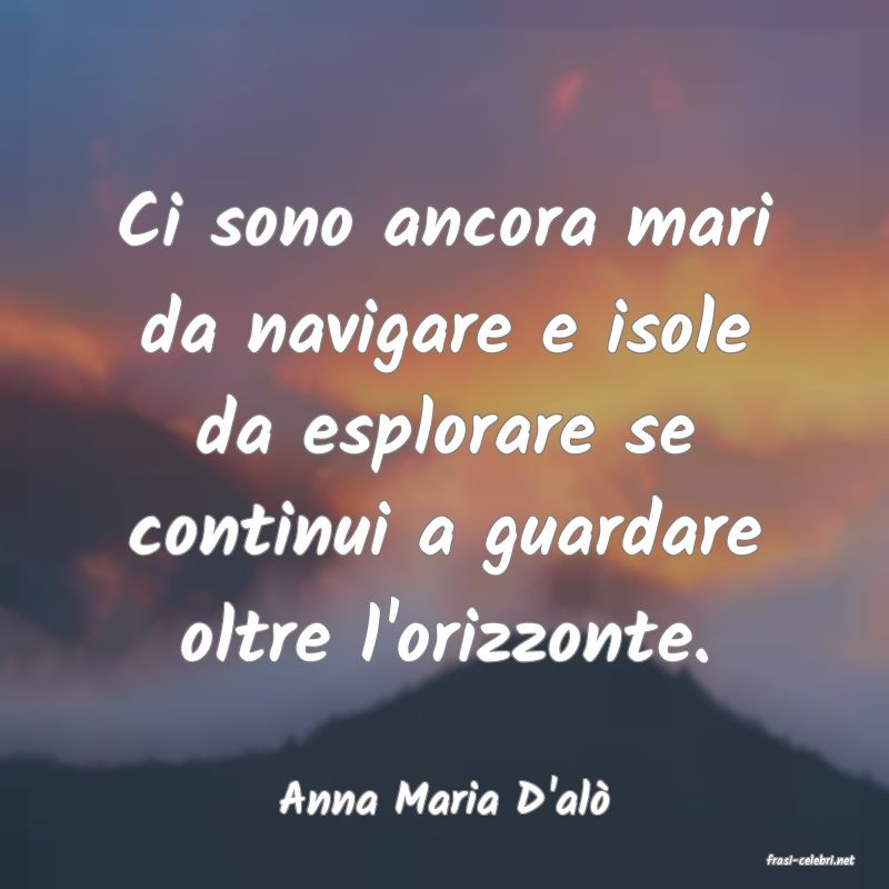 Ci sono ancora mari da navigare e isole da esplorare se continui a guardare oltre l'orizzonte. Anna Maria D'al?