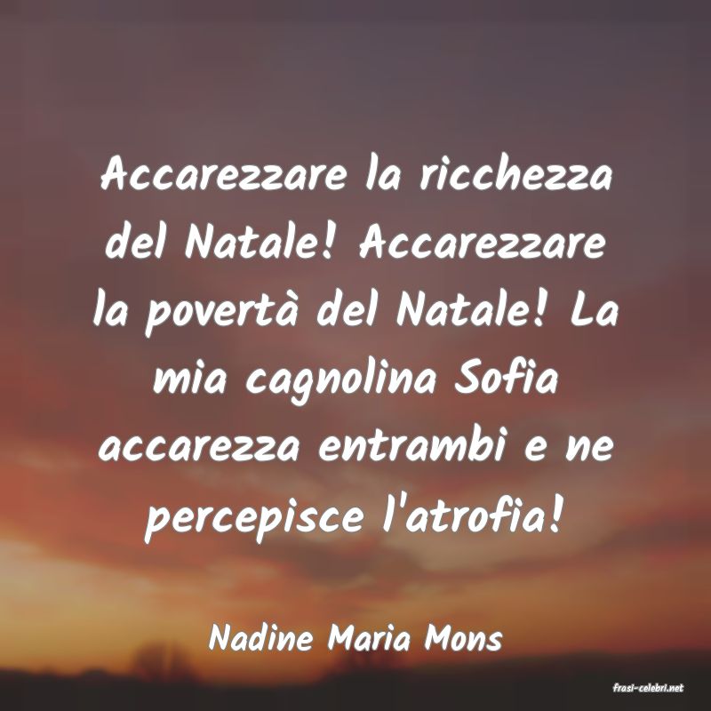 Accarezzare la ricchezza del Natale! Accarezzare la povertà del Natale! La mia cagnolina Sofia accarezza entrambi e ne percepisce l'atrofia! Nadine Maria Mons