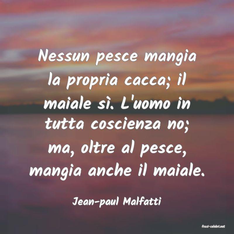 Nessun pesce mangia la propria cacca; il maiale sì. L'uomo in tutta coscienza no; ma, oltre al pesce, mangia anche il maiale.
