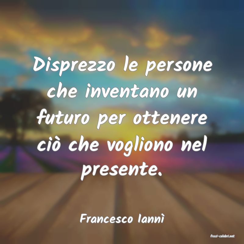 Disprezzo le persone che inventano un futuro per ottenere ciò che vogliono nel presente. Francesco Iann?