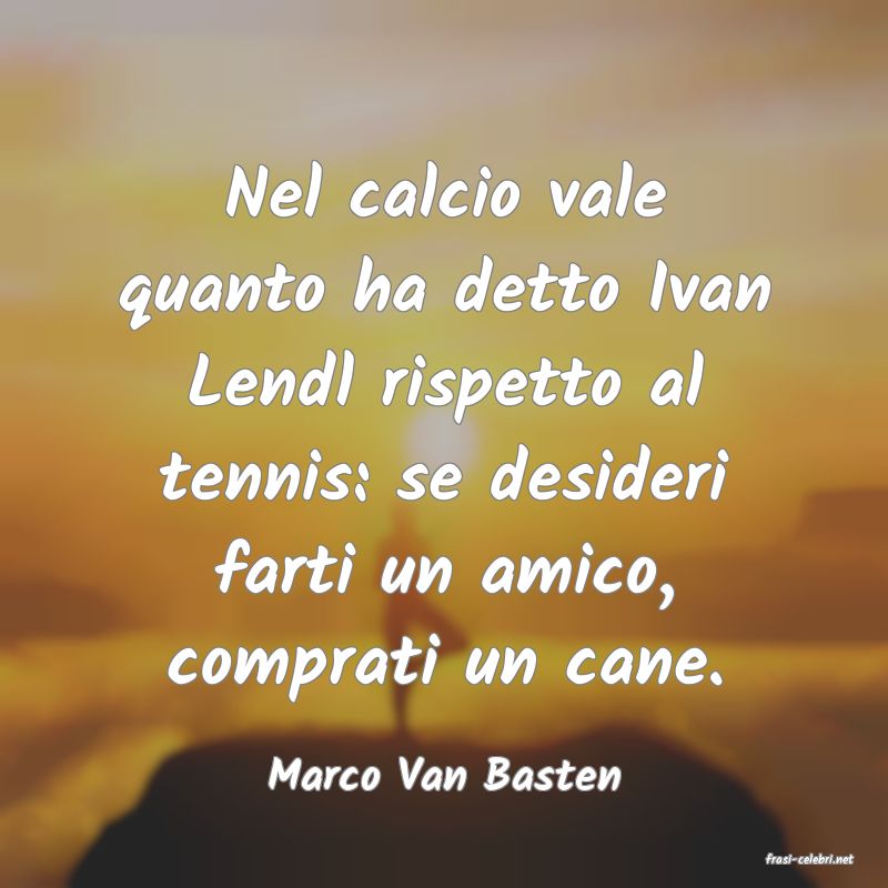 Nel calcio vale quanto ha detto Ivan Lendl rispetto al tennis: se desideri farti un amico, comprati un cane. Marco Van Basten