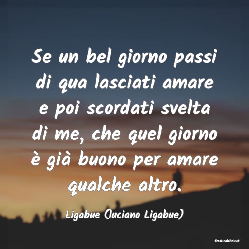 Se un bel giorno passi di qua lasciati amare e poi scordati svelta di me, che quel giorno è già buono per amare qualche altro.