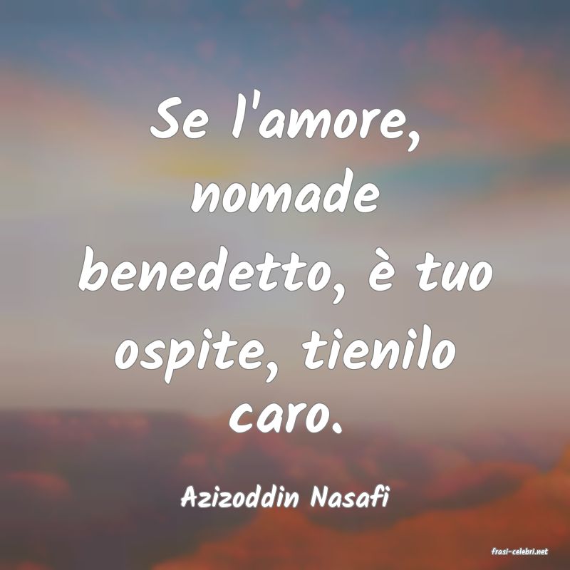 Se l'amore, nomade benedetto, è tuo ospite, tienilo caro.
