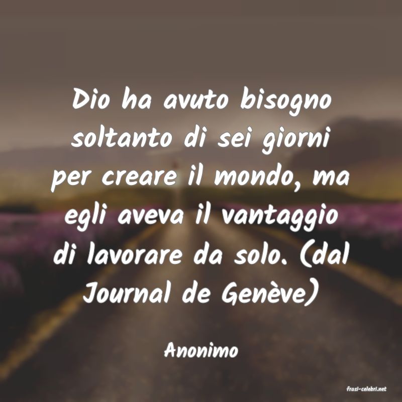 Dio ha avuto bisogno soltanto di sei giorni per creare il mondo, ma egli aveva il vantaggio di lavorare da solo. (dal Journal de Genève)