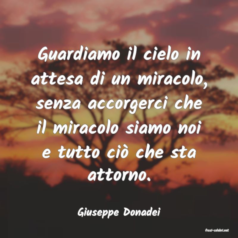 Guardiamo il cielo in attesa di un miracolo, senza accorgerci che il miracolo siamo noi e tutto ciò che sta attorno.
