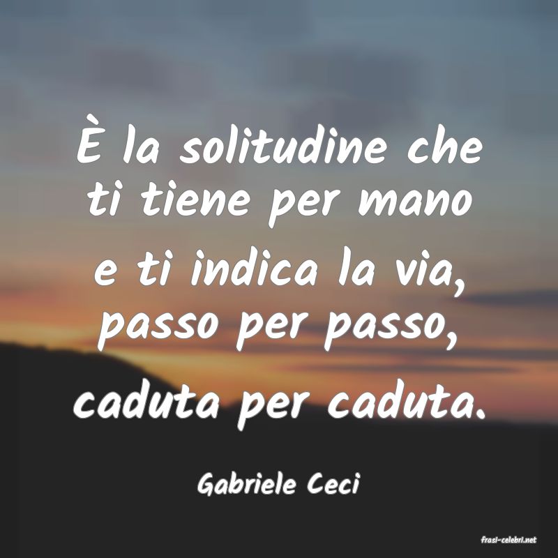 È la solitudine che ti tiene per mano e ti indica la via, passo per passo, caduta per caduta.