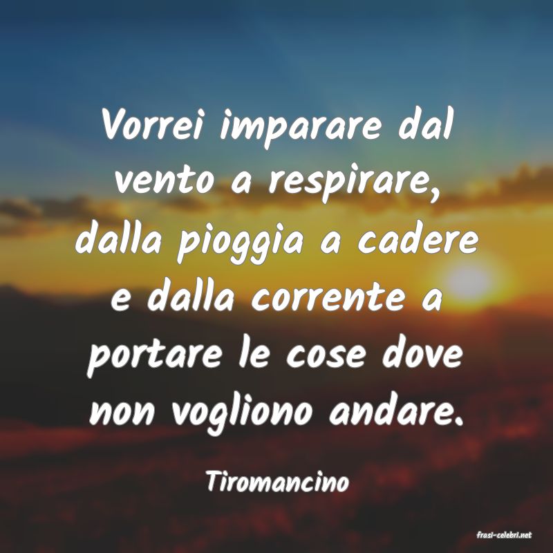 Vorrei imparare dal vento a respirare, dalla pioggia a cadere e dalla corrente a portare le cose dove non vogliono andare.