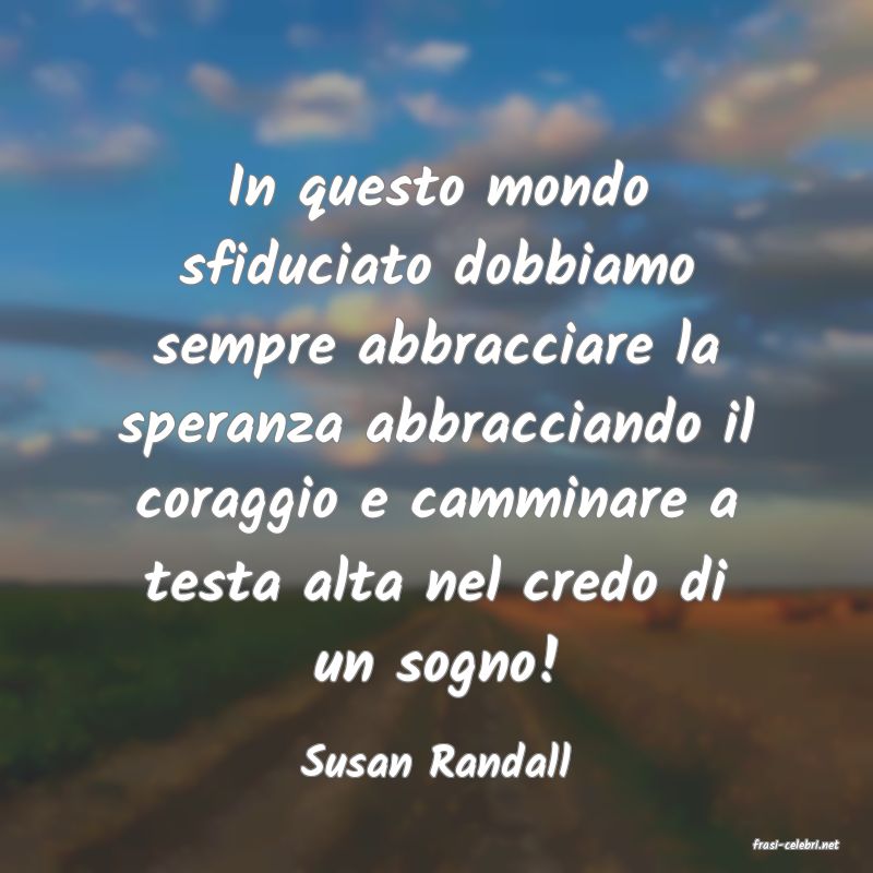 In questo mondo sfiduciato dobbiamo sempre abbracciare la speranza abbracciando il coraggio e camminare a testa alta nel credo di un sogno!