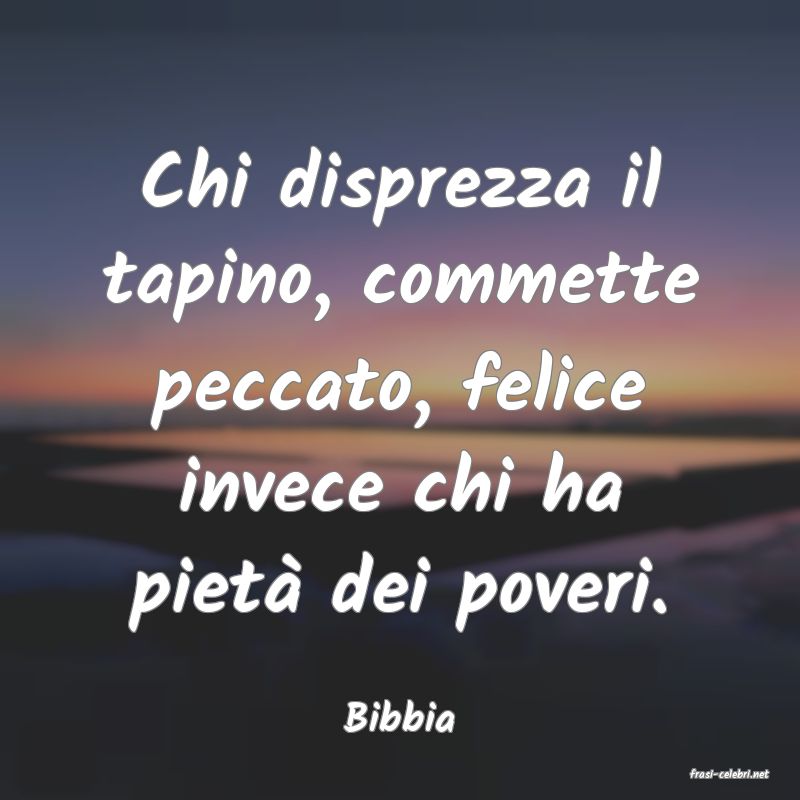 Chi disprezza il tapino, commette peccato, felice invece chi ha pietà dei poveri.