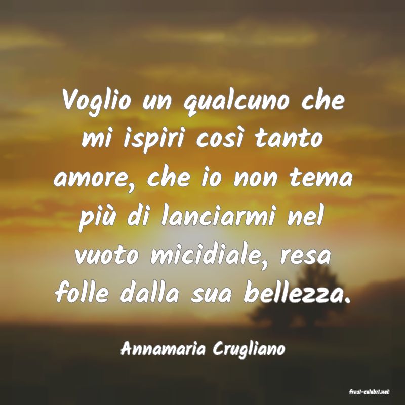 Voglio un qualcuno che mi ispiri così tanto amore, che io non tema più di lanciarmi nel vuoto micidiale, resa folle dalla sua bellezza.
