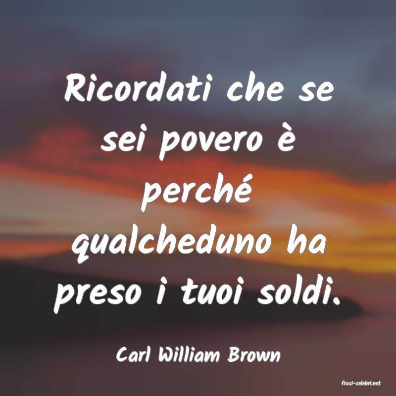 Ricordati che se sei povero è perché qualcheduno ha preso i tuoi soldi.