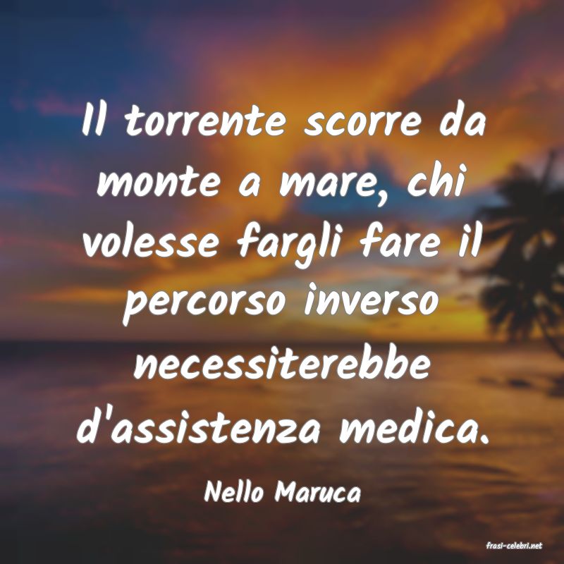 Il torrente scorre da monte a mare, chi volesse fargli fare il percorso inverso necessiterebbe d'assistenza medica.