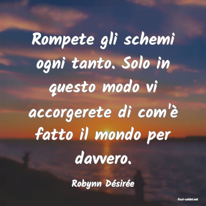 Rompete gli schemi ogni tanto. Solo in questo modo vi accorgerete di com'è fatto il mondo per davvero. Robynn D?sir?e