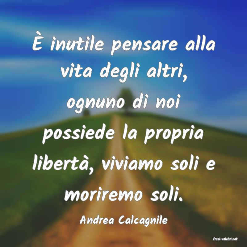 È inutile pensare alla vita degli altri, ognuno di noi possiede la propria libertà, viviamo soli e moriremo soli.