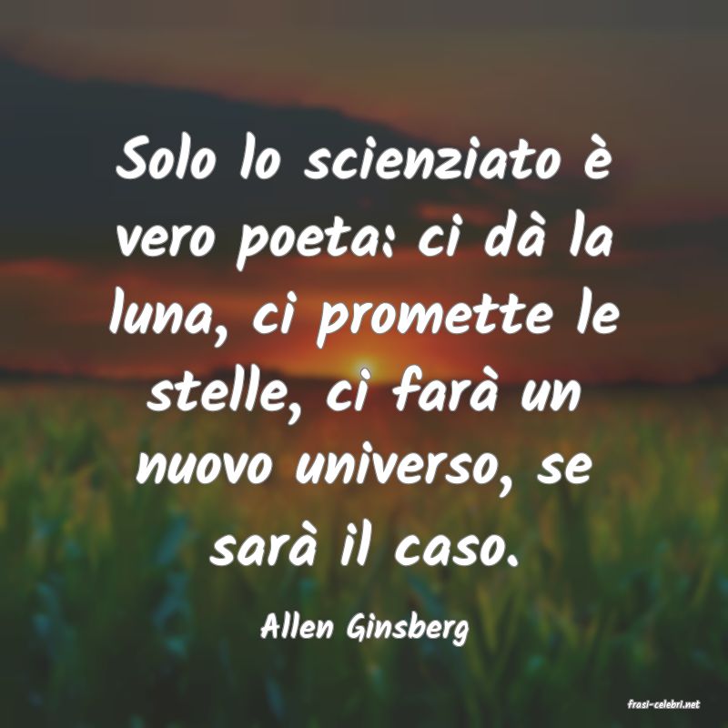 Solo lo scienziato è vero poeta: ci dà la luna, ci promette le stelle, ci farà un nuovo universo, se sarà il caso.