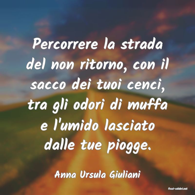 Percorrere la strada del non ritorno, con il sacco dei tuoi cenci, tra gli odori di muffa e l'umido lasciato dalle tue piogge.