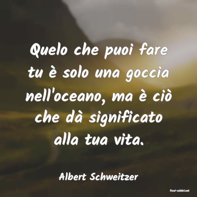 Quelo che puoi fare tu è solo una goccia nell'oceano, ma è ciò che dà significato alla tua vita.