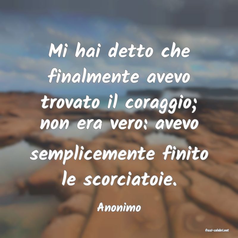 Mi hai detto che finalmente avevo trovato il coraggio; non era vero: avevo semplicemente finito le scorciatoie.