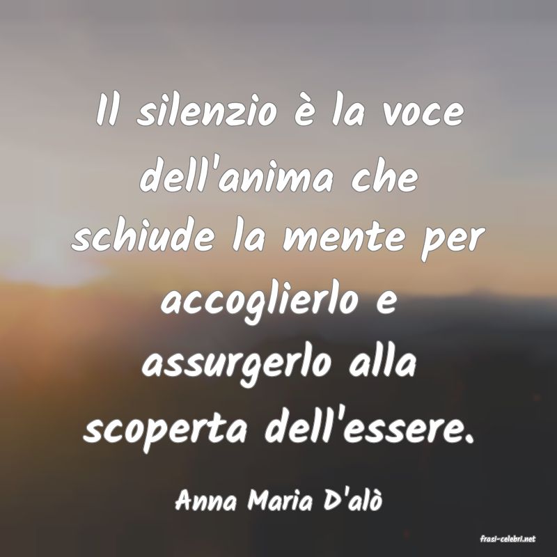 Il silenzio è la voce dell'anima che schiude la mente per accoglierlo e assurgerlo alla scoperta dell'essere. Anna Maria D'al?