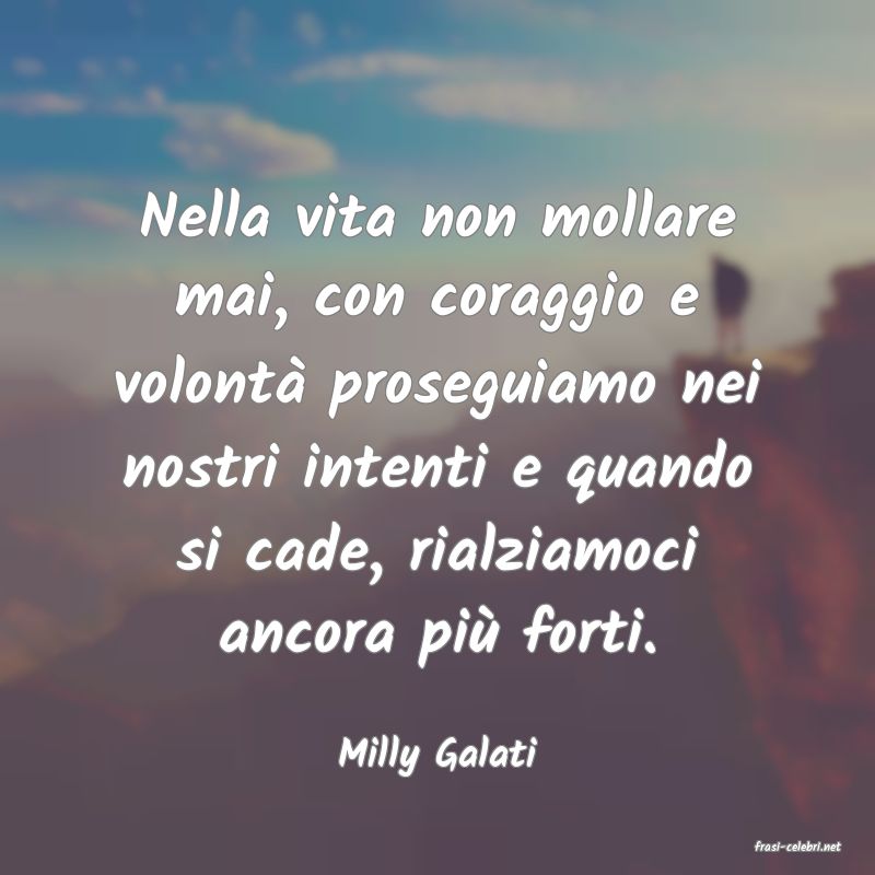 Nella vita non mollare mai, con coraggio e volontà proseguiamo nei nostri intenti e quando si cade, rialziamoci ancora più forti.