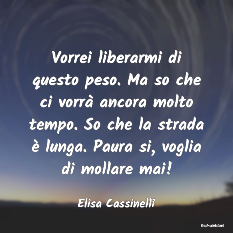 Vorrei liberarmi di questo peso. Ma so che ci vorrà ancora molto tempo. So che la strada è lunga. Paura si, voglia di mollare mai!