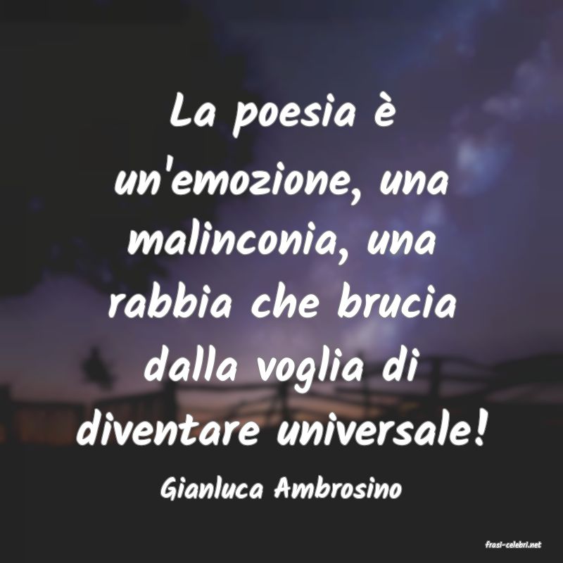 La poesia è un'emozione, una malinconia, una rabbia che brucia dalla voglia di diventare universale! Gianluca Ambrosino
