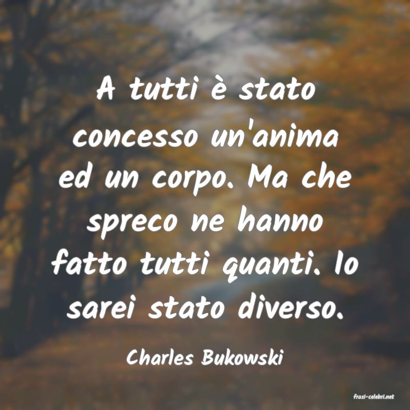 A tutti è stato concesso un'anima ed un corpo. Ma che spreco ne hanno fatto tutti quanti. Io sarei stato diverso.