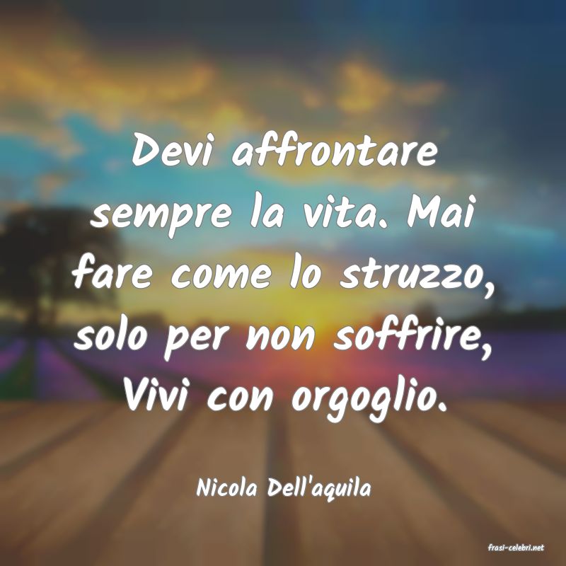 Devi affrontare sempre la vita. Mai fare come lo struzzo, solo per non soffrire, Vivi con orgoglio. Nicola Dell'aquila