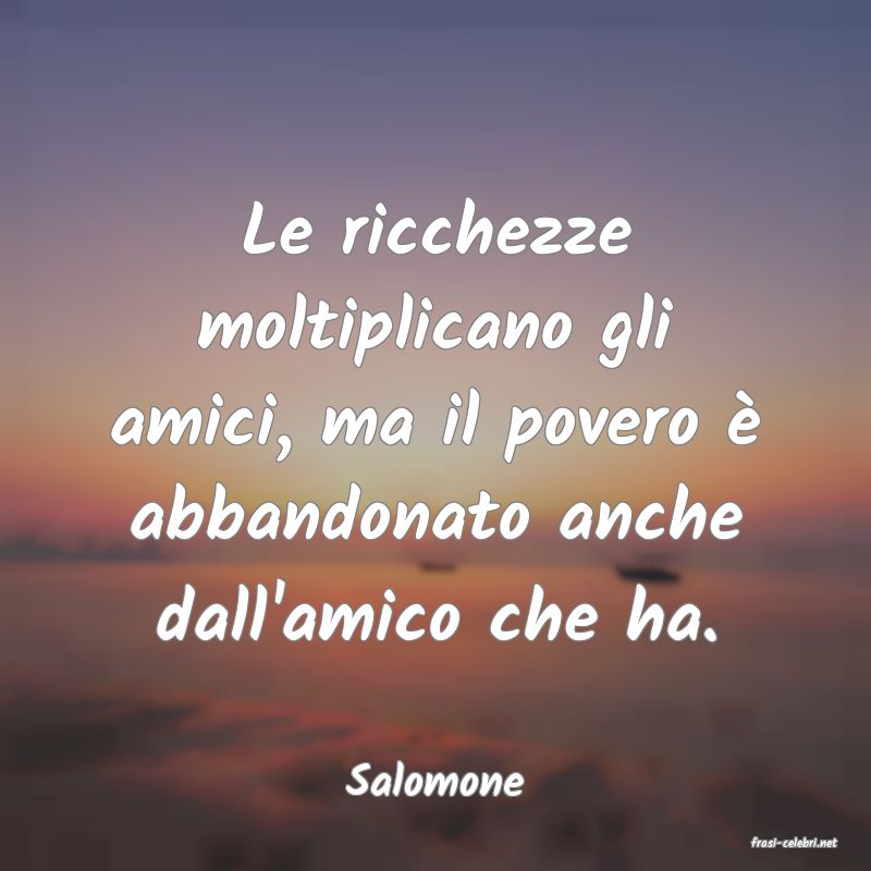 Le ricchezze moltiplicano gli amici, ma il povero � abbandonato anche dall'amico che ha.