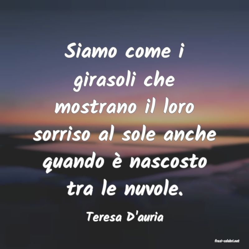 Siamo come i girasoli che mostrano il loro sorriso al sole anche quando è nascosto tra le nuvole. Teresa D'auria
