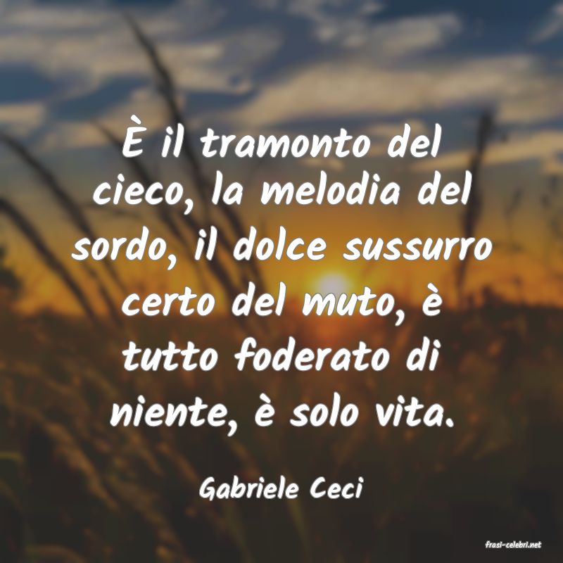 È il tramonto del cieco, la melodia del sordo, il dolce sussurro certo del muto, è tutto foderato di niente, è solo vita.