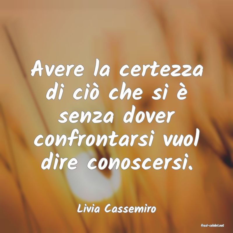 Avere la certezza di ciò che si è senza dover confrontarsi vuol dire conoscersi.
