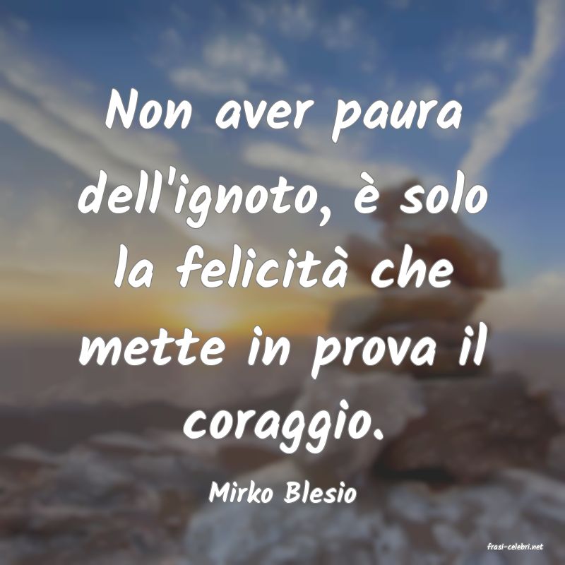Non aver paura dell'ignoto, è solo la felicità che mette in prova il coraggio.