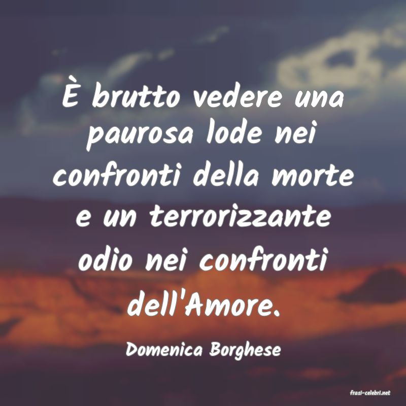 È brutto vedere una paurosa lode nei confronti della morte e un terrorizzante odio nei confronti dell'Amore.