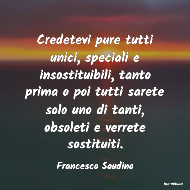Credetevi pure tutti unici, speciali e insostituibili, tanto prima o poi tutti sarete solo uno di tanti, obsoleti e verrete sostituiti.