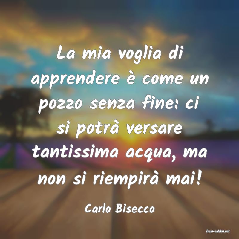 La mia voglia di apprendere è come un pozzo senza fine: ci si potrà versare tantissima acqua, ma non si riempirà mai!