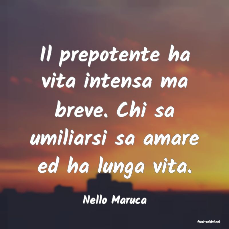 Il prepotente ha vita intensa ma breve. Chi sa umiliarsi sa amare ed ha lunga vita.