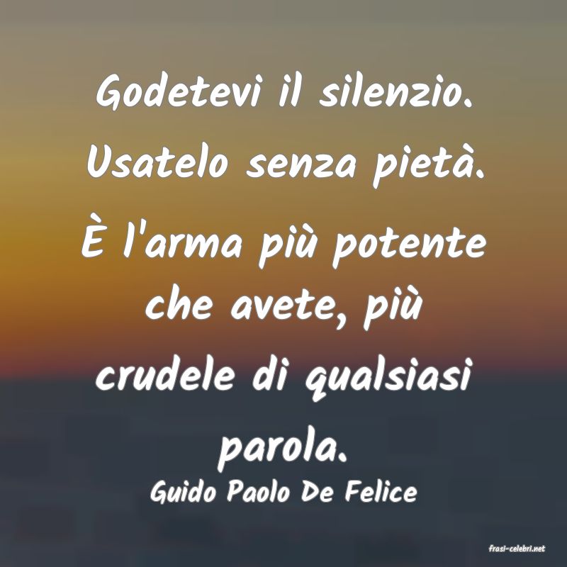 Godetevi il silenzio. Usatelo senza pietà. È l'arma più potente che avete, più crudele di qualsiasi parola.