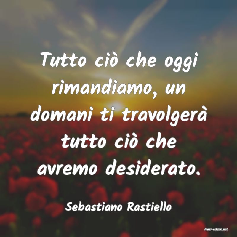 Tutto ciò che oggi rimandiamo, un domani ti travolgerà tutto ciò che avremo desiderato.