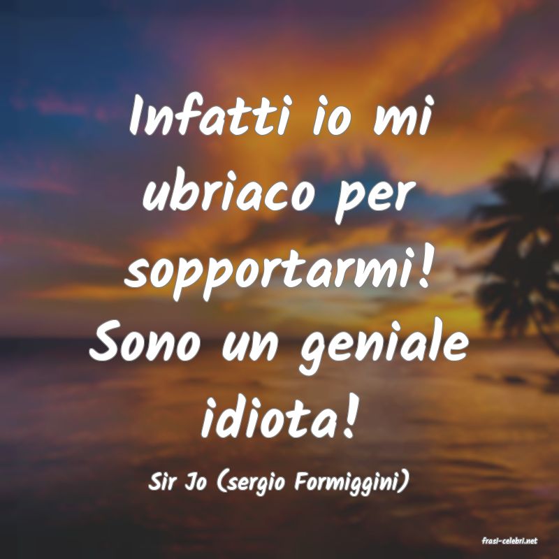 Infatti io mi ubriaco per sopportarmi! Sono un geniale idiota!