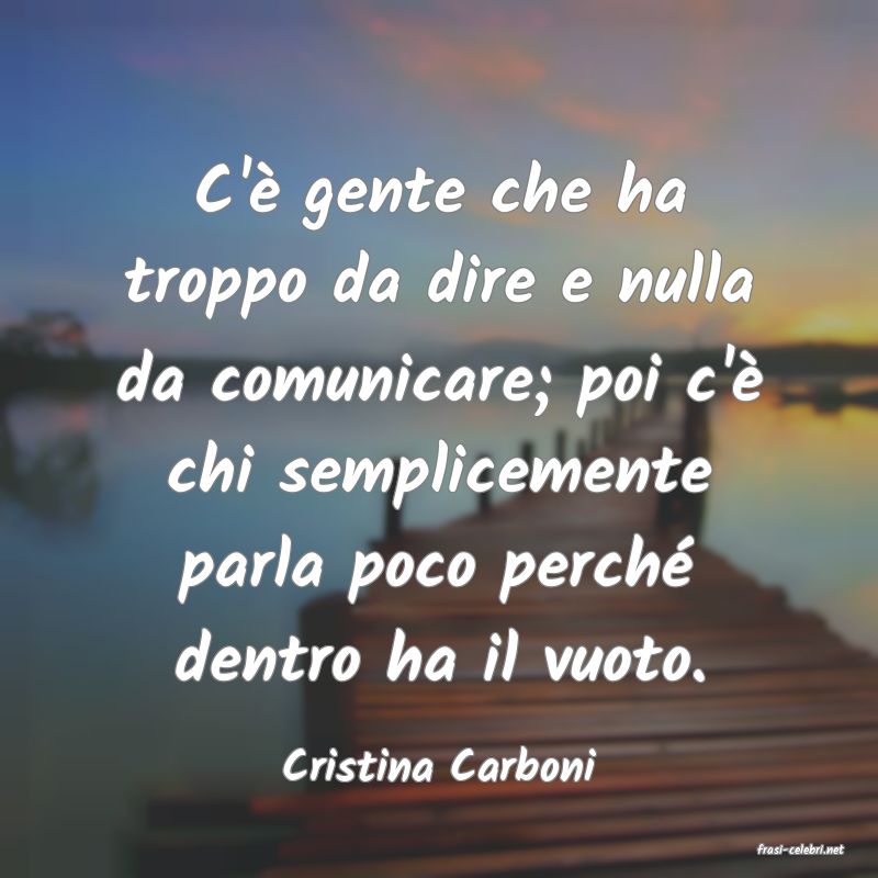 C'è gente che ha troppo da dire e nulla da comunicare; poi c'è chi semplicemente parla poco perché dentro ha il vuoto.