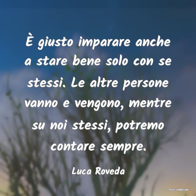 È giusto imparare anche a stare bene solo con se stessi. Le altre persone vanno e vengono, mentre su noi stessi, potremo contare sempre.
