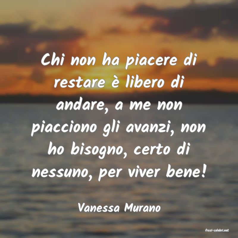 Chi non ha piacere di restare è libero di andare, a me non piacciono gli avanzi, non ho bisogno, certo di nessuno, per viver bene!